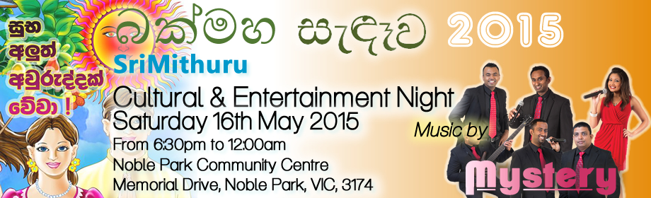 SriMithuru Cultural and Entertainment Night will be held at Noble Park Community Centre, Memorial Drive on Saturday 16th May 2015. The function will start with traditional oil lamp lighting by the senior participants’ followed by fancy dress parade.If you would like your child to